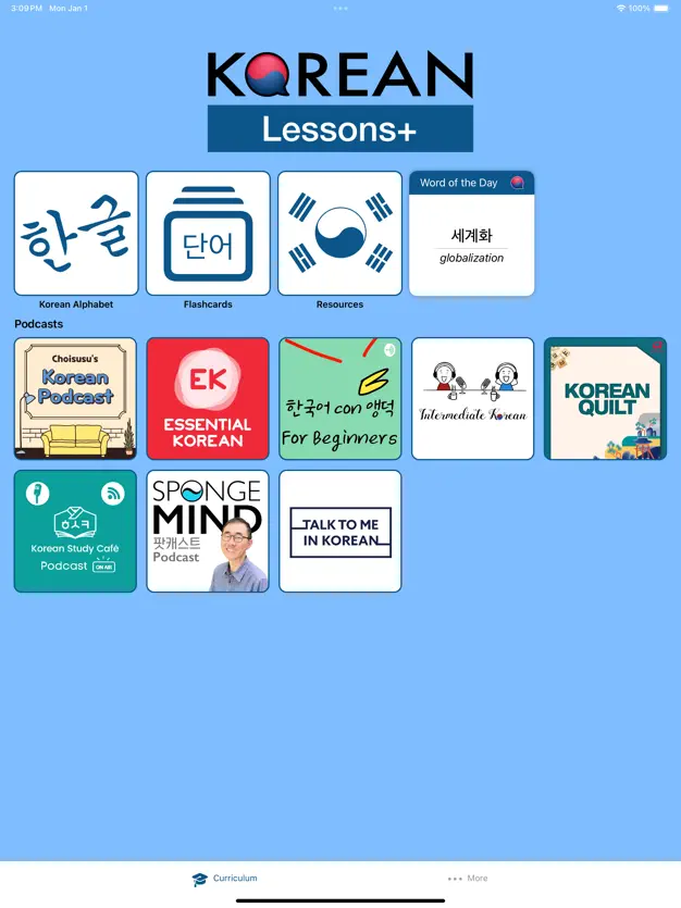 - Korean - Lessons+: Features comprehensive and structured lessons, podcasts of different themes, and quizzes suitable for learners of all levels, from beginners to advanced.